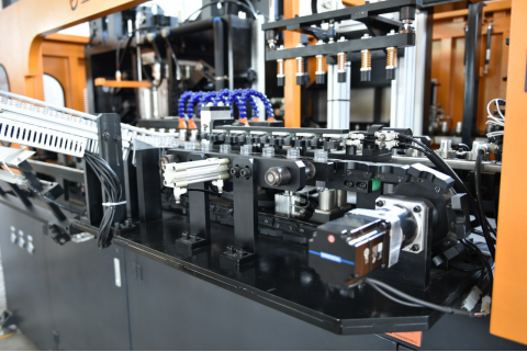 O sistema de fixação é acionado por um motor servo e movido por uma haste mecânica de conexão. O molde e o molde inferior são fechados sincronamente por um motor servo. A parte traseira do quadro do molde é equipada com uma placa de aumento de alta pressão, moldagem de bloqueio de alta pressão, reduzindo efetivamente a visibilidade da linha de fechamento da garrafa acabada, garantindo a qualidade da garrafa. O molde adota uma estrutura de gaveta, que é fácil de substituir o molde, e o operador pode completá-lo em meia hora. -